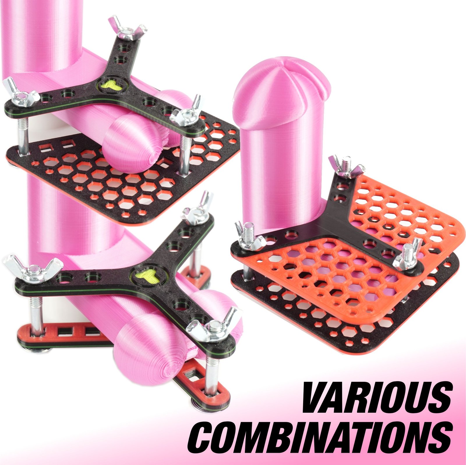 Place the testicles between the two perforated plates. The included Y-press arms are inserted through the top to apply targeted force. You may use one or both for different CBT effects.