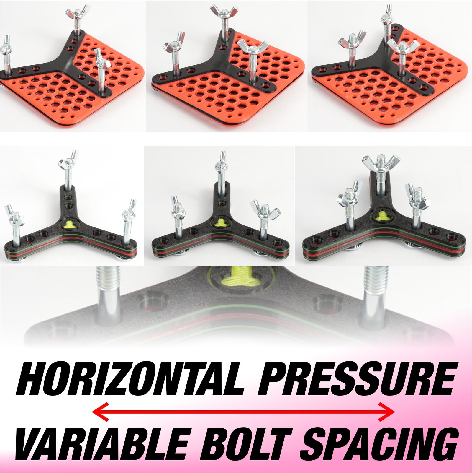 The spacing of the bolts can also be adjusted to suit the user’s anatomy.