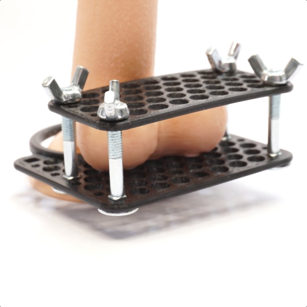 European CBT JAGUAR device for crushing, massaging, squeezing, and stimulating testicles and scrotum, adjustable and lightweight.