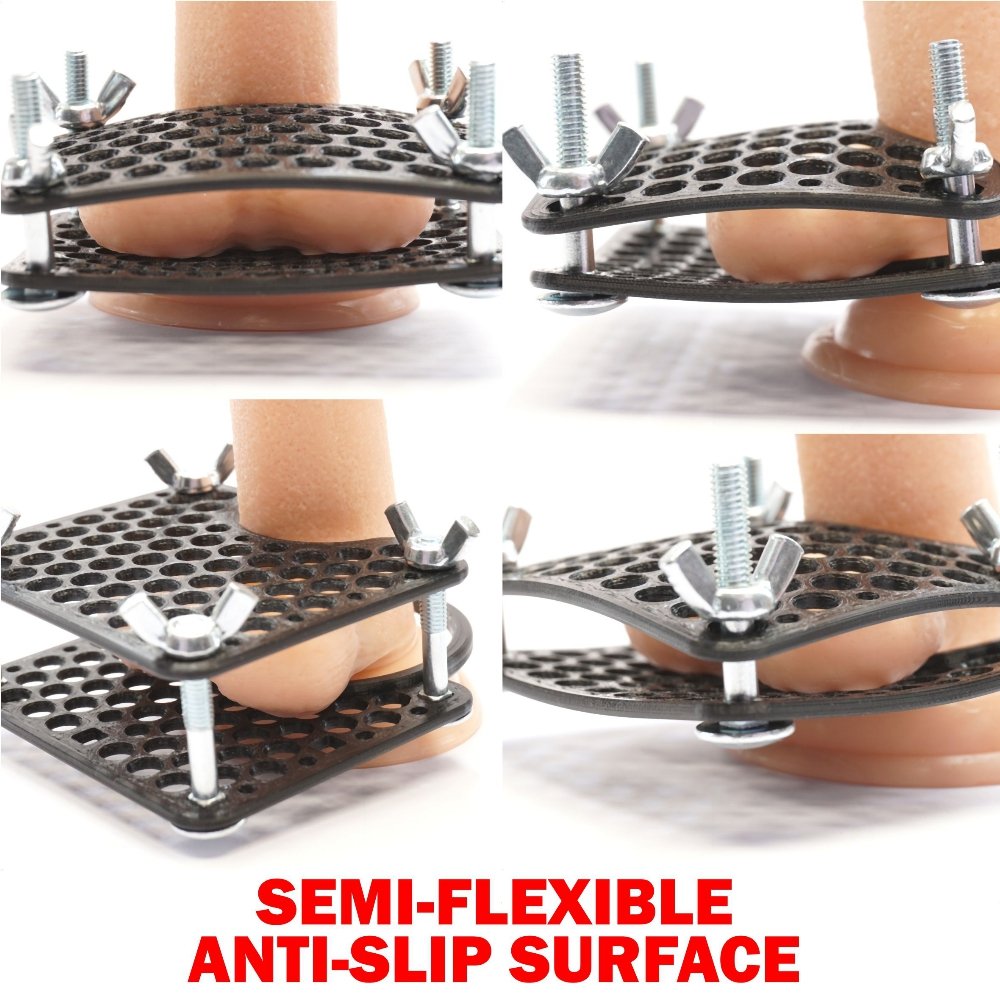 – Option to use either 4 or 3 adjustment screws. No dildo included ! The dildo is only an example and shows the possible applications.