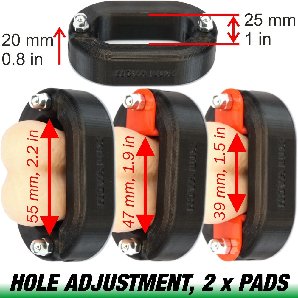– Elongated Scrotum Rim (height 20 mm, 0.8 in; inner hole max length: 55 mm, 2 in, width: 25 mm, 1 in),