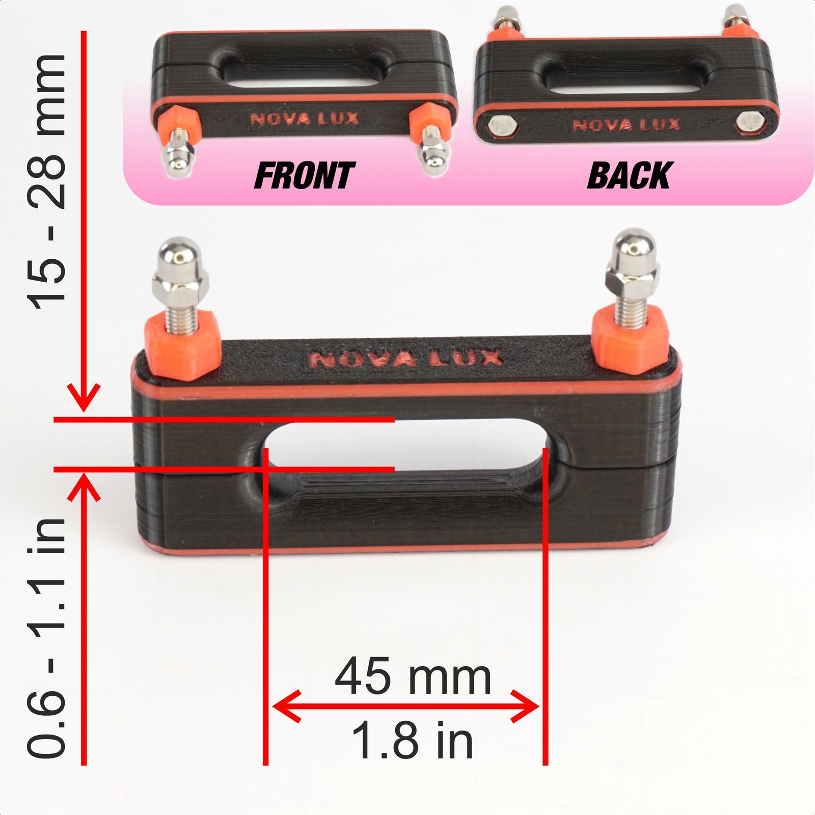 – Adjustable upper frame (in black and red),